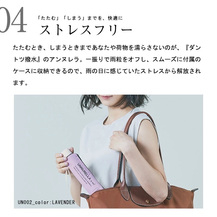 Shining a spotlight on such everyday events that everyone has experienced, we thought that if you don't get your umbrella wet, you can be considerate of those around you, so we combined the functionality of the highest level of water repellency.